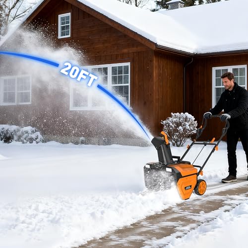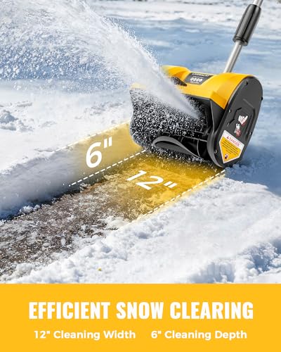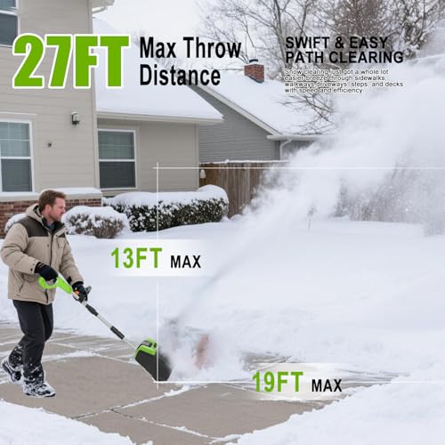 Click for More Images Impressive Throwing Distance: This cordless snow shovel snow up to 6.3" deep and 12.5" wide in a single pass, throwing snow as far as 27FT, adjustable chute angles ±45° left/right for precise snow placement. The snow...