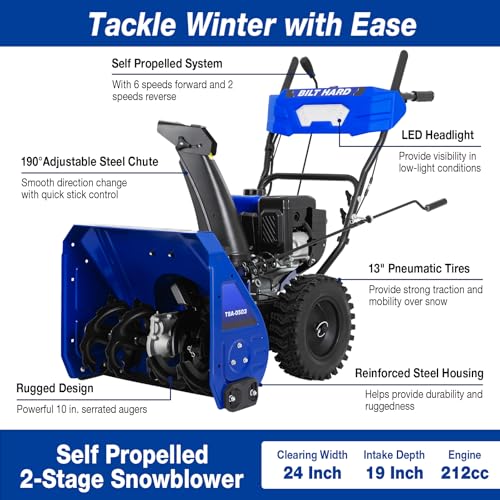 Click for More Images Effortless Snow Clearing: Powered by a sturdy 212cc 4-stroke OHV engine operating at 3600 rpm, this gas snow blower offers dependable performance, making it easy to conquer even the most challenging snowstorms. It clears a...