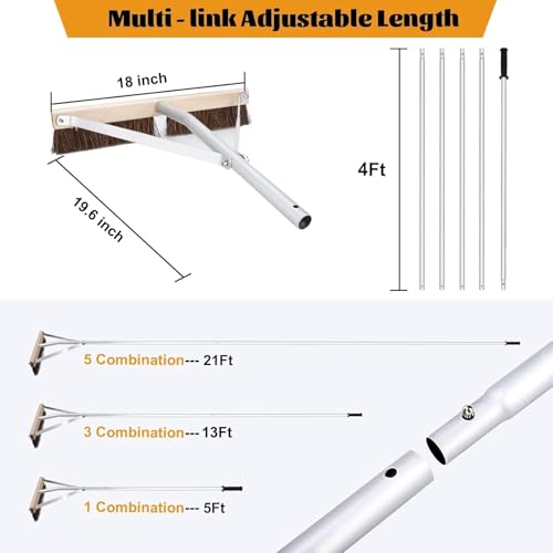 Click for More Images ?Adjustable length and complimentary non-slip gloves?Multi-link design, roof brush up to 21FT, can easily reach the required cleaning height without ladder.?Multi-purpose use?This roof rake can not only removes leaves from...