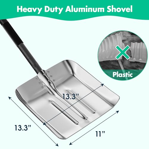 Click for More Images Lightweight Durable Construction: This aluminum snow shovel is crafted to be both lightweight and exceptionally strong, weights 2.5lbs. It minimizes fatigue during use, making it perfect for clearing snow efficiently without...