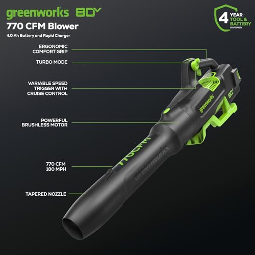 Click for More Images 80V AXIAL POWER (GAS-FREE) – 27cc Gas Engine Performance, Zero Noise/Fumes Replace gas blowers with eco-friendly 80V power—delivers 770 CFM/180 MPH wind force for heavy-duty leaves, wet debris, and driveway cleanup. No...