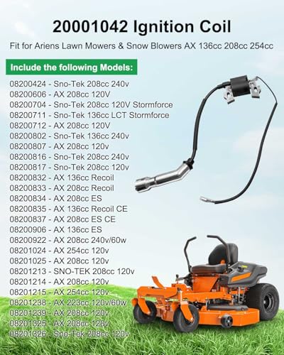 Click for More Images Perfect Compatibility: This ignition coil is compatible with Ariens lawn mower and snow blower AX 136cc 208cc 254cc spark plug wire, replace 20001042, ensures perfect fit and seamless docking and optimizes the performance of...